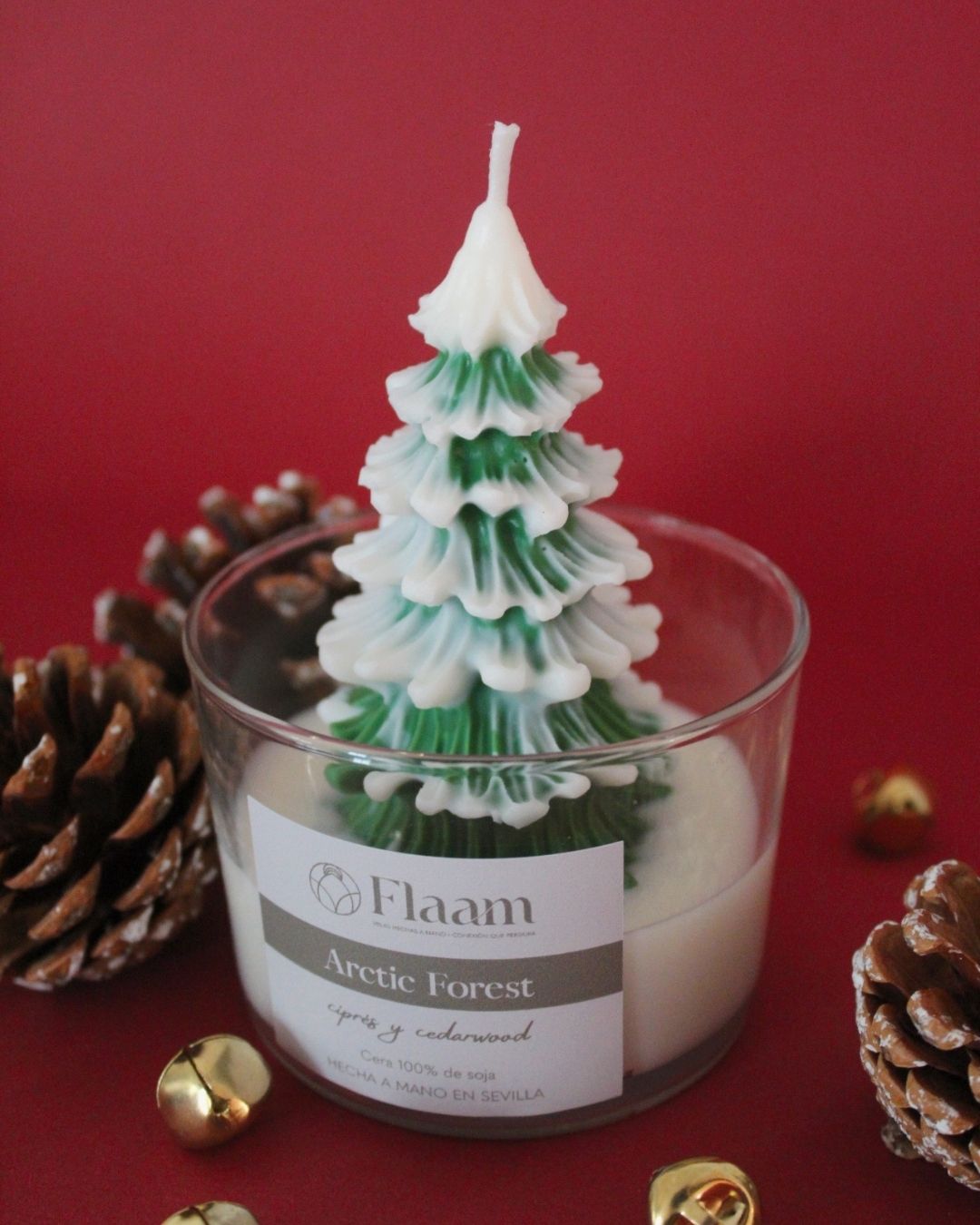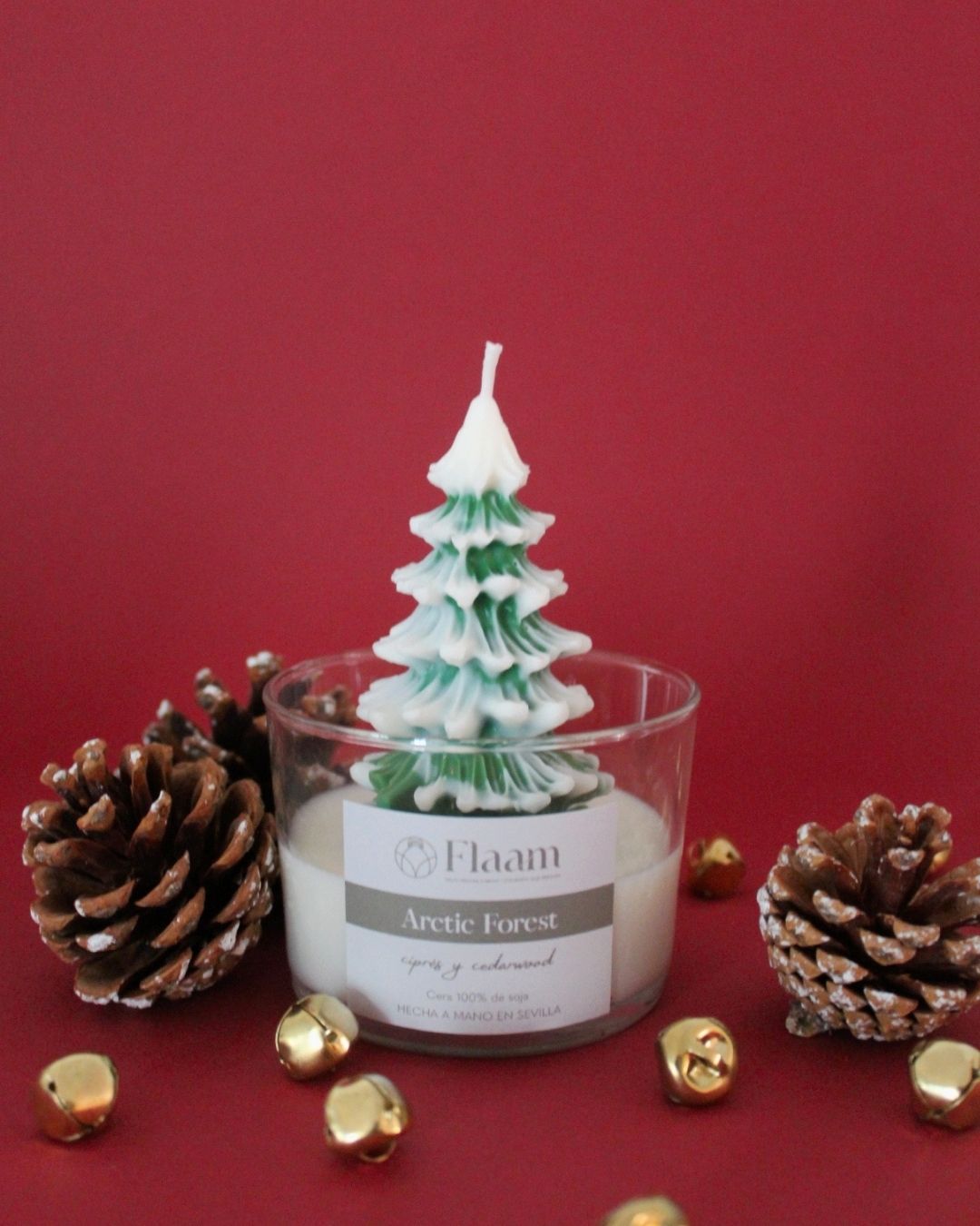 Arctic Forest es una pequeña joya invernal que captura la serenidad de los bosques nevados. Su protagonista es un delicado pino de cera con efecto nevado que sobresale del vasito, convirtiendo cada pieza en una escena digna de un cuento nórdico. ❄️☃️