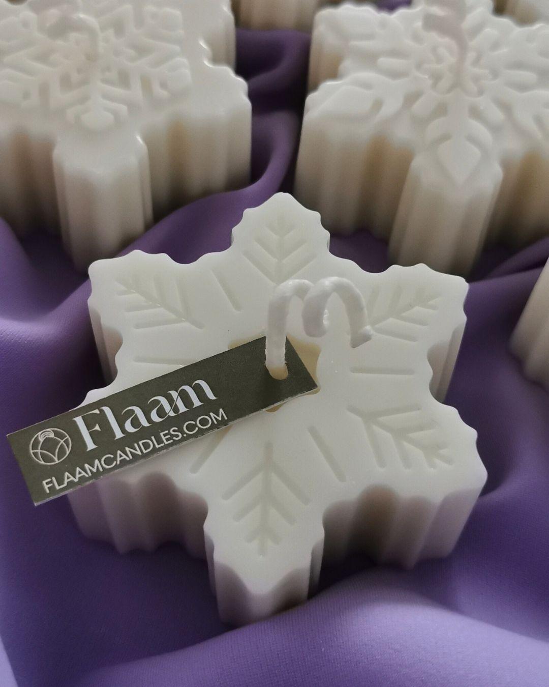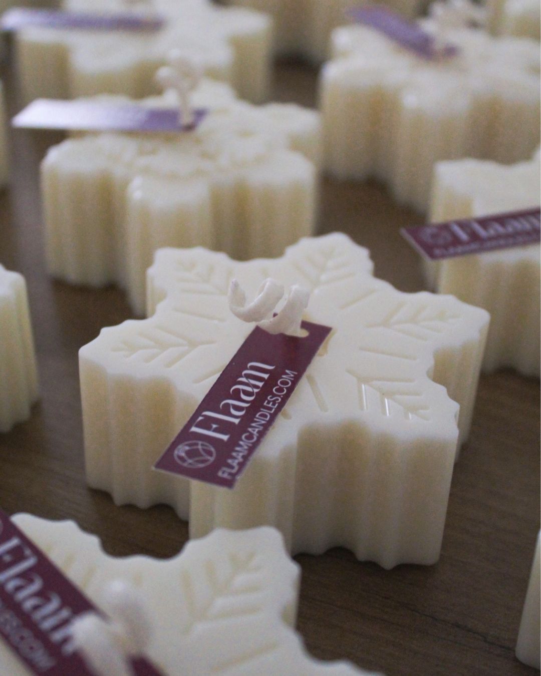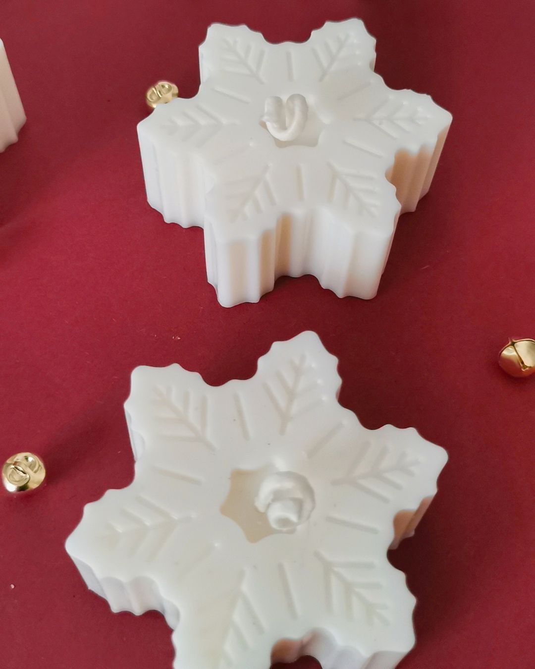 Esta vela en forma de copo de nieve❄️ trae todo el ambiente invernal a tu hogar, es una pieza decorativa muy chuli que resalta en cualquier espacio. Es también artesanal y hecha con cera de soja 100% natural y mecha de algodón.