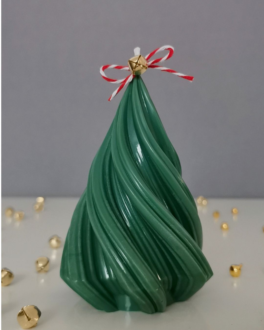 Este pino destaca por su diseño sofisticado y fluido, con una forma en espiral que desciende desde la punta hasta la base. Este elegante diseño crea un efecto visual único, perfecto para quienes buscan una pieza navideña distinta y estilizada.