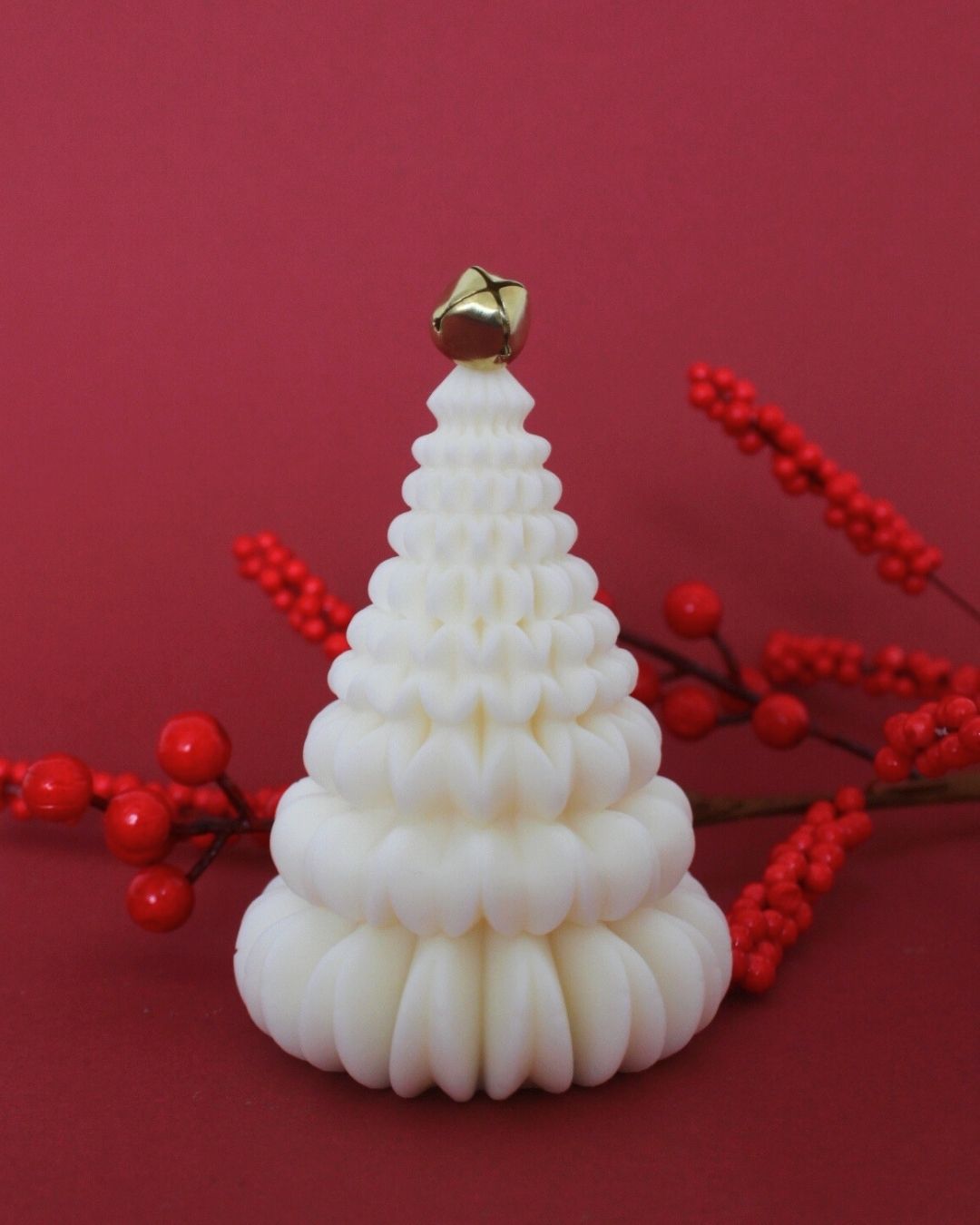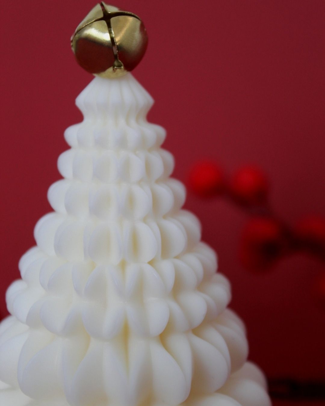 Inspirada en el arte japonés origami (el arte de doblar papel), esta vela con forma de pino navideño tiene una textura tipo oregami que crea un juego de luces y sombras precioso, como si el árbol estuviera esculpido en papel.