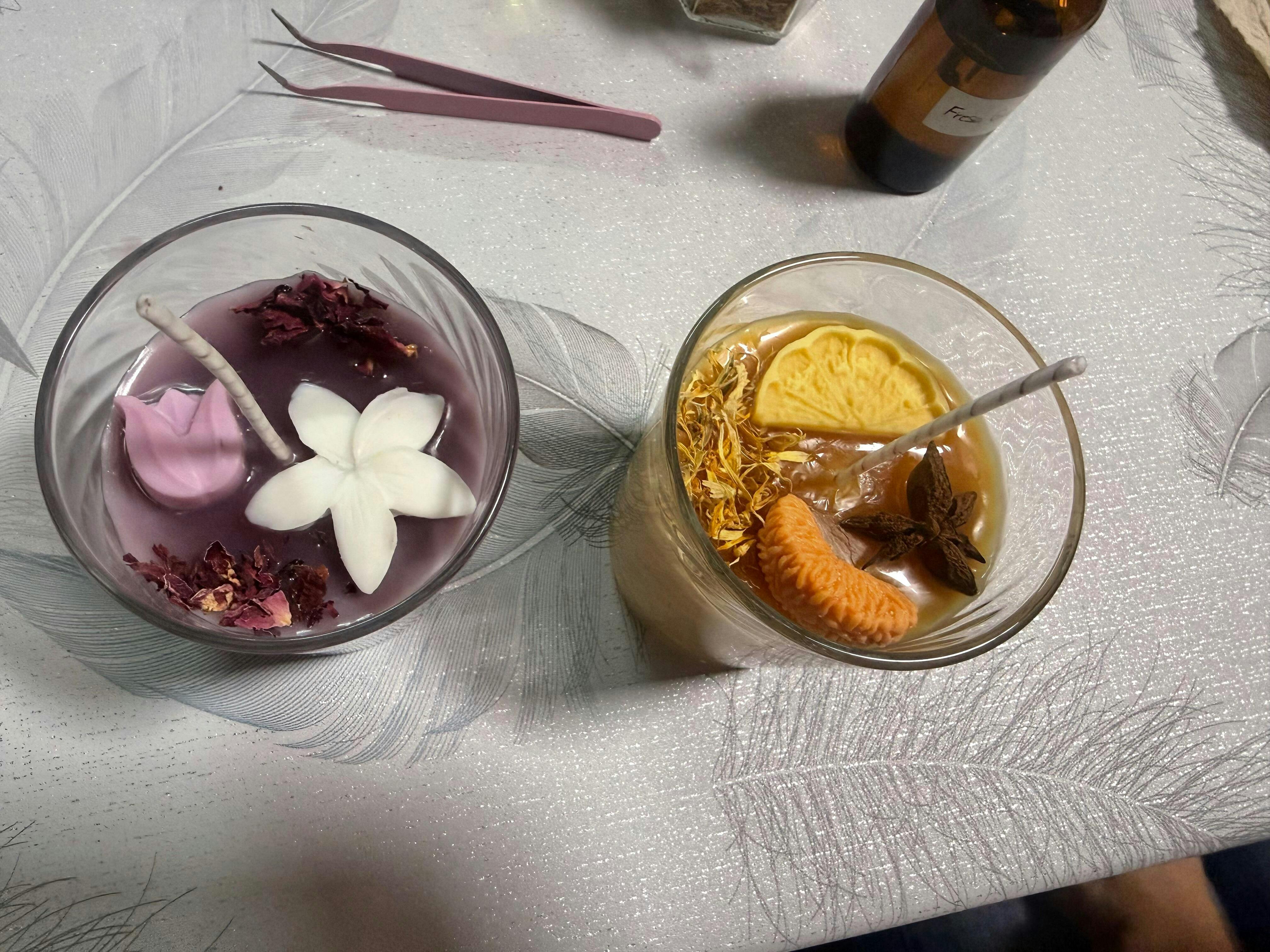 Durante este taller de aproximadamente dos horas y media, crearemos una vela aromática y un set de bombones aromáticos (¡Los que puedas hacer con 100 gr de cera! que son muchos).